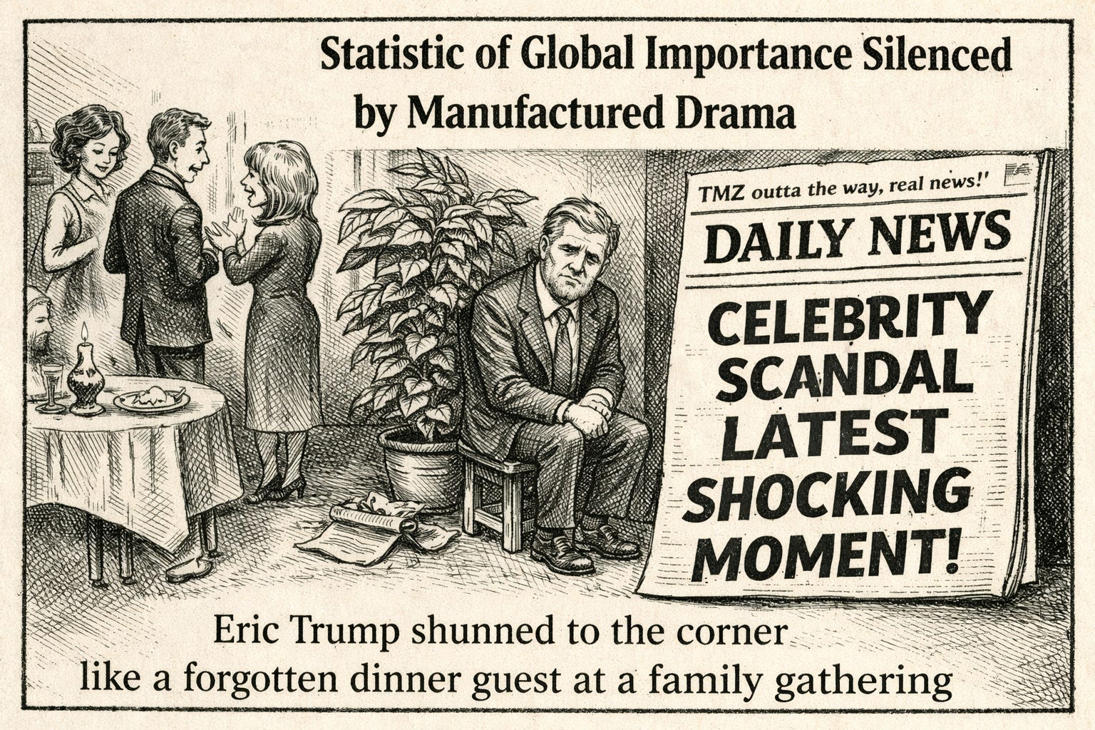 Let’s kick things off with a statistic so important it should’ve been splashed across every front page in the democratic world, but instead got shoved into the corner like Eric Trump at a family dinner party, completely drowned out by the week’s freshest batch of manufactured drama.
